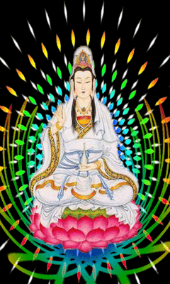 4.圆光观音:在圆光火焰中,合掌坐于岩石。