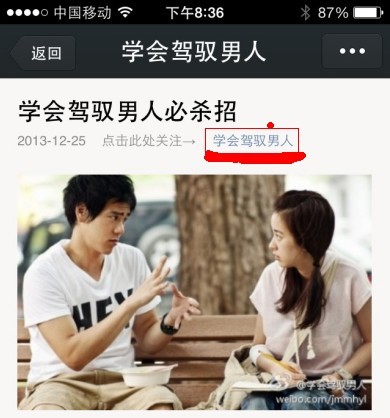 欢迎关注学会驾驭男人 微信id(xhjynr)点击下图红色圈圈也可以关注~!!!