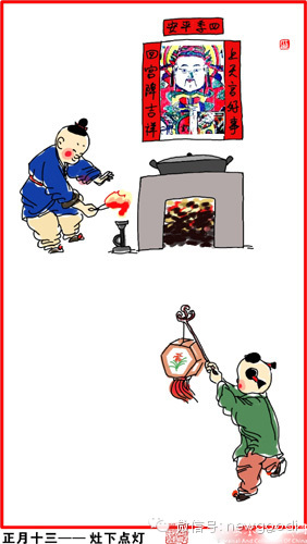正月十三,灶下点灯。预放元宵,自十三日起,巷陌桥道,皆编竹张灯。