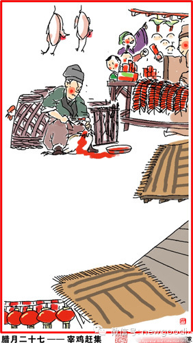 腊月二十七,宰年鸡、赶大集,春节所需物品都在置办之中。