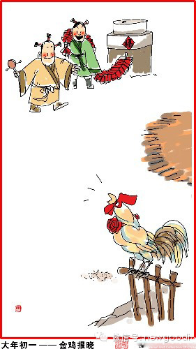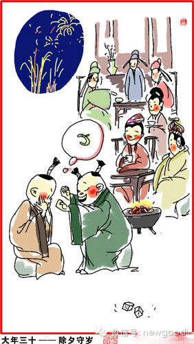 大年初一,金鸡报晓。晚辈给长辈拜年,长辈给压岁钱,压住邪祟。
