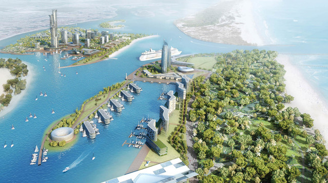 根据ASF澳中财富集团提交的设计开发方案,这项被视为世界一流海域项目的Broadwater游轮码头综合商业地产开发项目计划投资总额达50亿澳元,将于Broadwater水域的Seaway处修建豪华游轮码头,并计划在Wave Break岛上建一座68层的地标高楼作为赌城。该项目还将涵盖多个5、6星级酒店,奢侈品购物中心,游艇俱乐部,高端住宅及博物馆,学校,娱乐等配套设施,项目第一期计划将于2018年联邦运动会前竣工。工程规模和投资总额为昆省罕见,建成后将成为昆州历史上最大的综合旅游地标项目,堪与悉尼港湾并肩媲美,旨在凭借黄金海岸得天独厚的自然环境资源,打造全球富豪的新乐园。