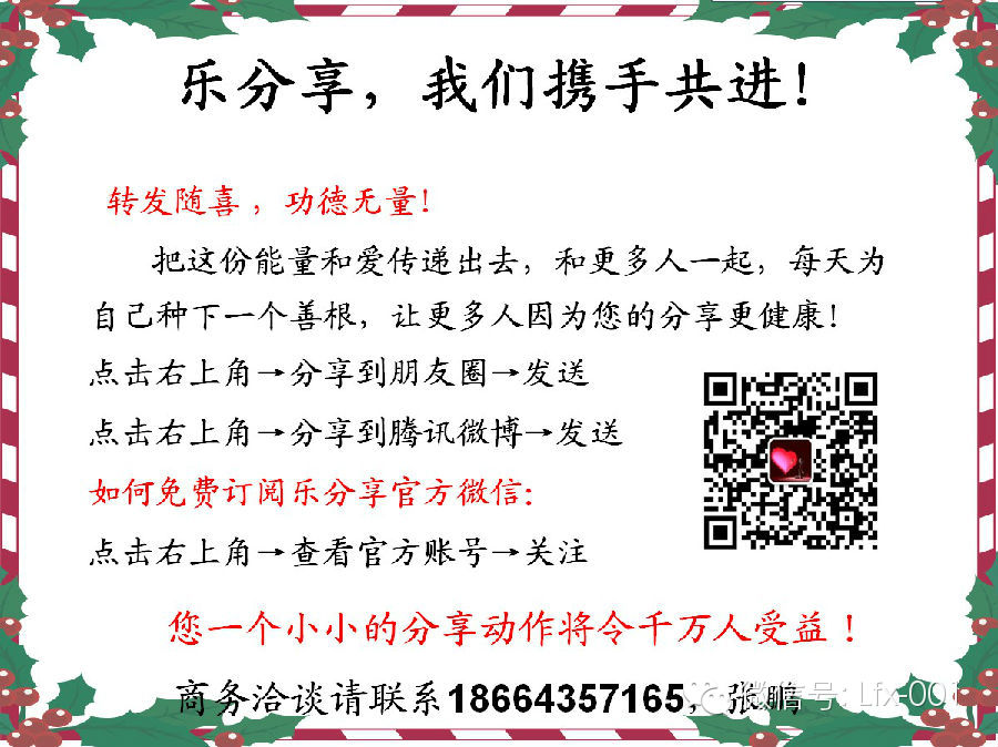 点击标题下面的蓝色字体“乐分享”——关注,即可持续免费接收正能量!