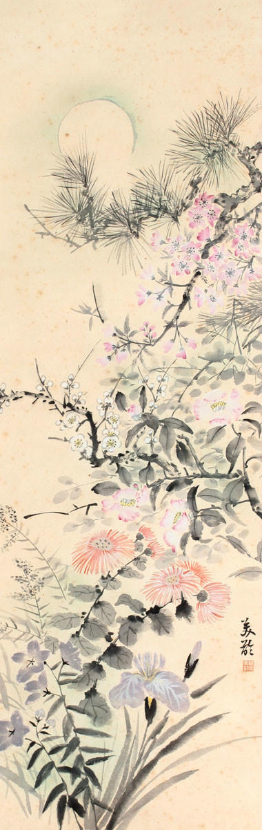 宋美龄:女(1897―2003)享年106岁,出生上海浦东,政治家,外交家。中华民国前第一夫人,与宋蔼龄、宋庆龄并称宋氏三姐妹。宋美龄多才 多艺,兴趣广泛,涉足音乐、外语、宗教、体育、美术等多个领域,而绘画是她终年爱好,曾向张大千学习山水画,拜黄君璧、郑曼青为师,学习花鸟画,宋美龄的 绘画风格和其老师有类似之处,山水画构图妥贴,用笔精到,清逸处有灵气,沉厚处韵苍润,古趣昂然。