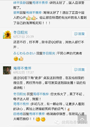 杨澜女士,人生要修炼的东西很多,你不要把心思都用在弄巧上。现在看来,你真的还是个童工,没有期望中的成熟。你不会是故意的吧?你是有光环的人,要有对应的政治素质。中华民族卧虎藏龙,不能轻率。我只是个普通百姓,无意去伤害你。因为仍爱着你,所以写了这些文字。不说心里不畅,写了又不知如何处置。寄给你很可能收不到,网上发了又怕有伤害。