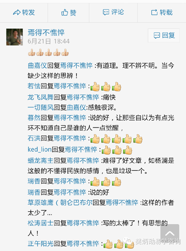 杨澜女士,历史要辩证地看,现实要批判地看。我们一定做错了什么,不然不会有这么多人不满。吴晓波在他的《财富与幸福》中说:“世界上没有那个国家像当下的中国,对财富有那样强烈的向往;也没有那个国家像当下的中国,财富与幸福之间存在着如此大的对立。”是呀,经济增长了,满意度反而下降了,物质发达了,幸福感反而削弱了。这就是我们时代的奇痒症。它让人找不到身上的痒处,搔不住,挠不着。又不便大喊大叫,弄得呲牙咧嘴,一脸的尴尬;严重的信仰缺失,普遍的价值错位。疯狂的道德沦丧,中华民族坚强不屈的战斗精神没有得到传承。党和国家的凝聚力下降,在现象和本质之间,我们已经蒙蔽了那双辩证的眼睛。人民大众的道德情怀和思想感情受到伤害。等等这一切,就是我们的民族之痛,这种痛使我们内心流血。可悲的是精英们视而不见,更可悲的是有的人压根儿就是浑然不知。