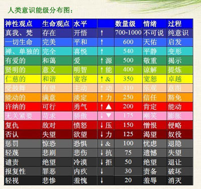 美国著名的心理学教授,大卫霍金斯花了30多年研究,发现存在于我们这个世界的隐藏的图表。一个有关人类所有意识的能级水平的图表。相信这会让你大吃一惊。