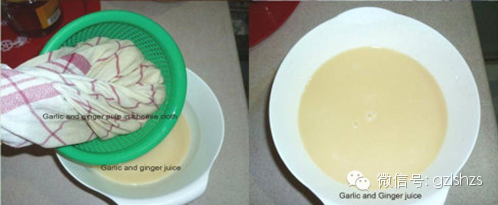 1. 蒜头去皮,姜去皮切小片,放入榨汁机榨汁,或者放入搅拌器打成浆,用网布隔渣,绞出汁。