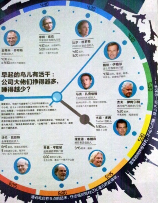 下面,让我们来看看大佬们到底起多早,以及,早起后他们在做什么。