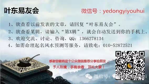 本空间所有文章欢迎大家转载、分享到朋友圈,或推荐给您的朋友,让更多的人接触并了解易经文化。予人玫瑰,手留余香。传播善法,是“法布施”,具有很大的功德。