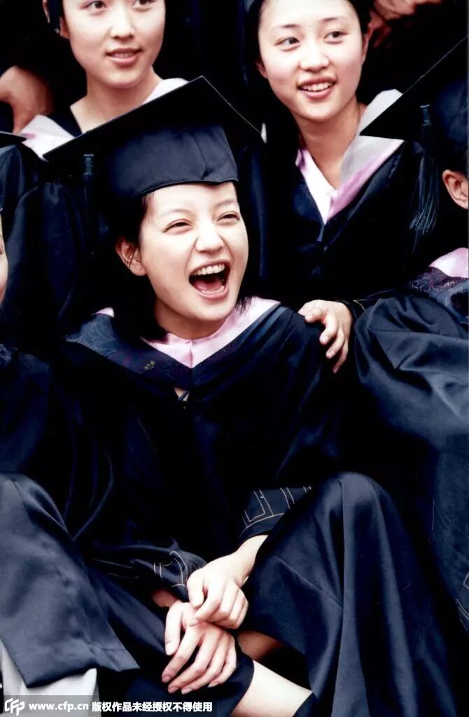 2000年6月28日,应届大学本科毕业的赵薇,在北京电影学院毕业典礼上开怀大笑。